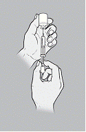 Szúrja át az injekciós tűvel az injekciós üveget fedő gumidugó közepét, majd a fecskendő dugattyújának megnyomásával a fecskendőben lévő oldószer teljes mennyiségét juttassa az üvegbe. Az üveget és a fecskendőt együtt tartva, óvatos, körkörös mozdulatokkal segítse az injekciós üveg tartalmának teljes feloldódását. Az injekciós oldatot nem szabad felhasználni, ha a por nem oldódott fel teljesen, az oldat opálos vagy elszíneződött. Soha ne használjon csapvizet vagy a fecskendőben lévő folyadéktól eltérő folyadékot.
