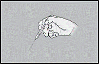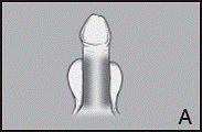 · Tartsa meg péniszét középső és mutató ujjával a herékhez közel alulról, hüvelykujjával felülről megtámasztva. Enyhén nyomja össze péniszét hüvelykujja és középső és mutató ujjai között, hogy az injekció helye kiemelkedjen. Péniszén a fityma legyen feszes. Az injekciót a pénisz A. ábrán feltüntetett, szürkével besatírozott területére kell beadni.