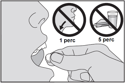 5. Helyezze a gyógyszert a nyelve alá és hagyja ott, amíg feloldódik! 1 percig ne nyeljen! A gyógyszer bevételét követően legalább 5 percig ne egyen és ne igyon!