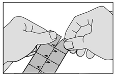 1. Tépje le a buborékcsomagolás tetején lévő, háromszögekkel jelölt csíkot!