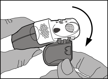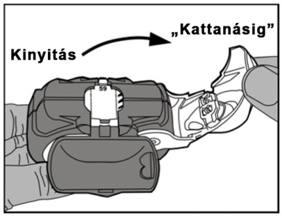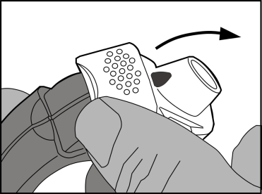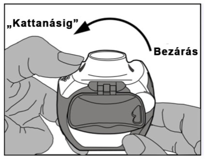 Az inhalátor használata során az oldalsó rekesz fokozatosan megtelik a használt fóliacsíkkal. A fóliacsík fekete sávval jelölt szakaszai nem tartalmaznak gyógyszert. Ezután a fóliacsík számozott szakaszai lesznek láthatók az oldalsó rekeszben. Az oldalsó kamrában ne hagyjon 2-nél több fóliacsík-szakaszt, mert eltömődhet az inhalátor. A fóliacsík használt szakaszát óvatosan tépje le (a fenti ábra szerint), és biztonságosan dobja ki.