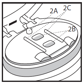 | A gyógyszertámasztó felület tartalma: - A csatlakozási pont (2A), ahová a két buborékcsomagolású fóliacsík csatlakozik. - Két üreg (2B), amely igazodik a fóliacsík két buborékcsomagolásához. - Két fóliacsík-vezető (2C), amely a megfelelő pozícióba erősen rögzíti a két buborékcsomagolású fóliacsíkot a gyógyszertámasztó felületen. |