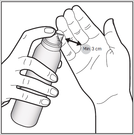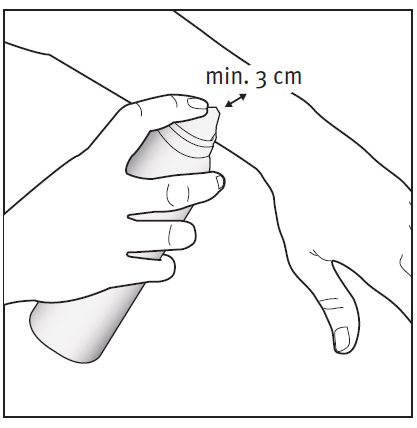 2. Tartsa távol a palackot legalább 3 cm‑re a bőrtől és fújja közvetlenül az érintett területre. |