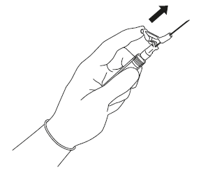 FIGYELEM: Saját magától és másoktól eltávolítva hozza működésbe a tűvédő szerkezetet. Figyeljen a kattanásra, és nézze meg, hogy a tű hegye teljesen borított-e. | 5. ábra