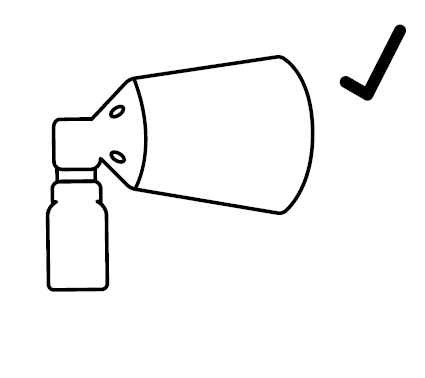 | 2. Helyes összeillesztés Az eszköz akkor van helyesen összeillesztve, ha az összenyomás után kattanást hall, az adagolópumpa nyílása pedig a szórófej közepén látható. |