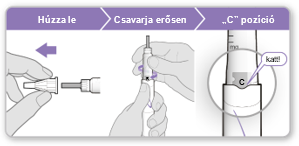 - Kövesse a 7. lépéstől az utasításokat (Az új előretöltött injekciós toll összeállítása és használata).