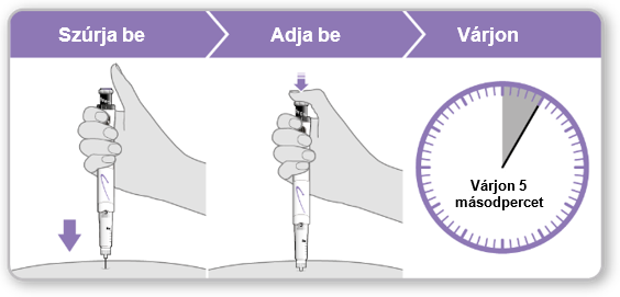 - Várjon teljes 5 másodpercet, hogy megbizonyosodhasson arról, hogy a teljes adagot beadta. Ez idő alatt a lila színű injektáló gombot finoman tartsa nyomva.