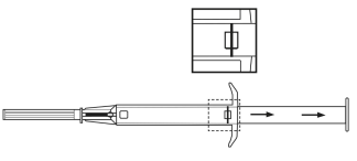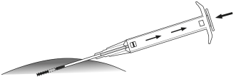 - Az implantátum szúrcsatornába való fecskendezése érdekében a dugattyút teljesen nyomja be egészen a végső állásig, ekkor egy kattanást hall.
