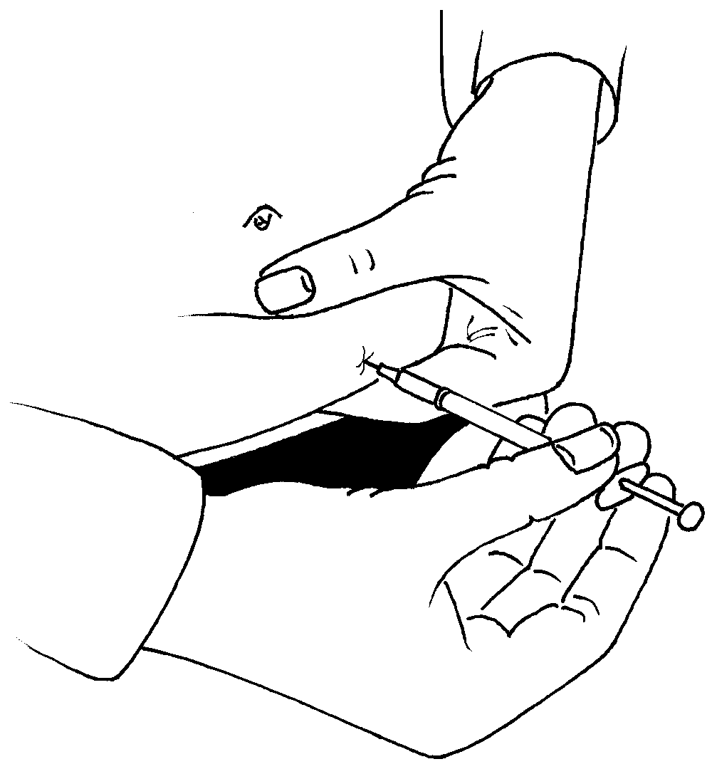 - A fecskendő eltávolítása után gyakoroljon nyomást az injekció beadásának helyére, hogy elállítsa a vérzést. Az injekció beadásának helyének gyengéd masszírozása elősegíti az oldat bőr alatti eloszlását.