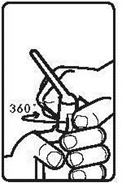 Közvetlenül a használat előtt a tartályt vegye ki az alumínium védőfólia zsákból, és a tartályt alaposan rázza fel.- A zár kinyitásához az applikátor csőr tövénél lévő, visszafolyást gátló szelepet az óramutató járásával megegyező irányban 360°-kal fordítsa el. A szelep elfordítás után állása megegyezik az elfordítás előtti állással.