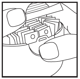 C. Az eszköz tisztítása Minden használat után törölje le a szájfeltétet és a gyógyszertámasztó felületet egy száraz ruhával vagy egy száraz papírzsebkendővel. Ne használjon vizet az eszköz tisztításához. Zárja be a szájrészt és a kupakját. | |