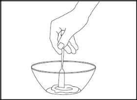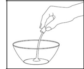 Tartson egy 75 mg-os kapszulát függőlegesen az egyik tálka fölé, és ollóval óvatosan vágja le a lekerekített végét. Legyen óvatos a porral, mivel irritálhatja a bőrét és a szemét. Öntse az összes port a tálkába, függetlenül attól, hogy mekkora adagot kell elkészítenie.