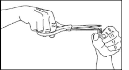 Tartsa a 75 mg-os kapszulát függőlegesen egy tálka fölé és ollóval óvatosan vágja le a lekerekített végét.